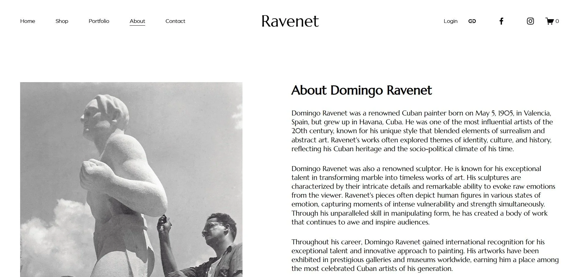 This was a website that I was tasked with making by a relative of Domingo Ravenet.I opened a dedicated shop to share Domingo Ravenet’s work and to preserve his legacy. The shop offers original pieces, high-quality prints, an art book, and a range of related items selected to reflect Ravenet’s vision and artistic trajectory. Each product listing includes clear provenance, condition notes, and context about the work’s place in his career so buyers understand what they’re acquiring and why it matters.