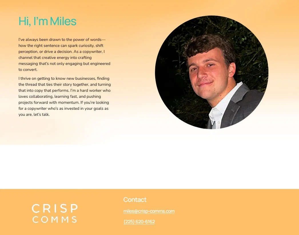 I built a website for my friend Miles’ copywriting business. He wanted something that stood out from the competition and brought in customers!